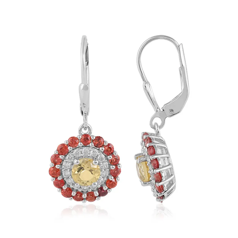 Verleihen Sie Ihrem Ensemble mit diesen bezaubernden Tropfenohrringen einen Hauch von warmen Farben. Die lebhaften brasilianischen gelben Berylle mit einem Gewicht von fast 1 Karat werden von Halos aus feurigen tansanischen Rubinen und funkelnden kambodschanischen Zirkonen umrahmt – ein Trio, das Eleganz ausstrahlt. Die liebevoll aus platiniertem 925er Sterling Silber gefertigten Ohrringe sind ein Hauch von Luxus für jeden Anlass. Sie sind perfekt, um ein warmes Kleid oder eine Bluse zu betonen und eignen sich sowohl für den eleganten Tag als auch für den glamourösen Abend.