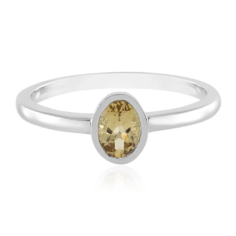 Entdecken Sie die Anziehungskraft unseres Silberrings mit brasilianischem Gelbberyll, einem Schmuckstück, das durch seinen leuchtenden Edelstein von 0,607 Karat im Ovalschliff bezaubert. Eingefasst in fein gearbeitetes, platiniertes 925er Sterlingsilber, bringt dieses Schmuckstück Eleganz in jede Kleidung. Die raffinierte Brillanz des Berylls und das schlichte Design des Rings machen ihn zum idealen Begleiter für den Tag und den Abend. Bringen Sie mit diesem zeitlosen Accessoire einen Hauch von Sonnenschein in Ihre Sammlung.
