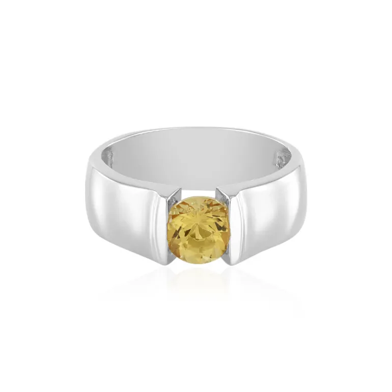 Entdecken Sie die sonnige Ausstrahlung unseres Rings mit brasilianischem Gelbberyll, eingebettet in ein schlankes Band aus platiniertem 925er Sterling Silber. Der 1,164 Karat schwere Edelstein im Rundschliff strahlt Wärme aus dem Herzen dieses modernen Designs aus und misst beeindruckende 7 mm im Durchmesser. Mit einem Gewicht von ca. 4,73 Gramm setzt dieser Ring ein mutiges Statement, ohne dabei an Komfort einzubüßen. Seine moderne Silhouette garantiert Vielseitigkeit für das tägliche Tragen oder besondere Anlässe und macht ihn zu einer außergewöhnlichen Ergänzung Ihrer Schmucksammlung.