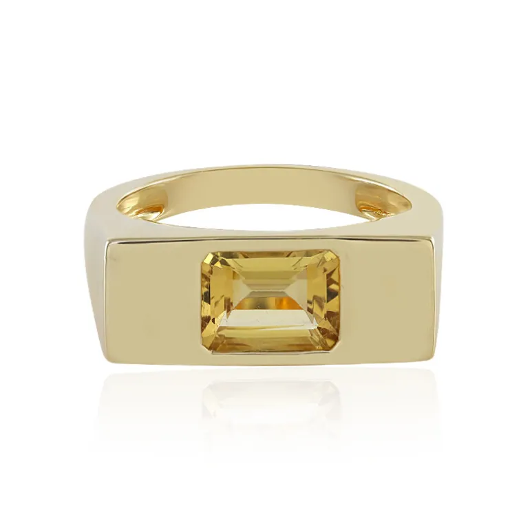 Dieses mit Raffinesse gefertigte Schmuckstück zeigt einen atemberaubenden, sonnenfarbenen brasilianischen Beryll, der auf einem eleganten Band aus 925er Sterlingsilber mit einer opulenten Goldplattierung präsentiert wird. Der 1,395 Karat schwere Edelstein hat einen eleganten Achteck-Schliff, der das Licht wunderbar einfängt und Ihrem Ensemble einen Hauch von Glanz verleiht. Die perfekte Größe von 8×6 mm macht ihn zu einem idealen Schmuckstück für lässige Brunchs oder elegante Abendveranstaltungen. Kombinieren Sie ihn mit Erdtönen oder heben Sie ihn von einem kleinen schwarzen Kleid ab.
