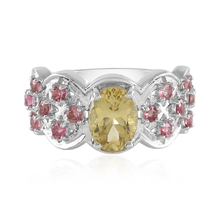 Brasilianischer gelber Beryll & rosa Turmalin Silberring, 1,395ct