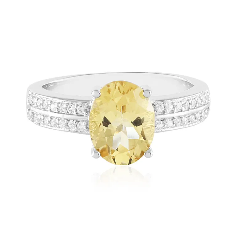 Erfreuen Sie sich an der Brillanz dieses sonnenverwöhnten brasilianischen Gelbberyllrings, der von einem fesselnden Edelstein im Ovalschliff von 1,37 Karat gekrönt wird, der in glänzendes platiniertes 925er Sterlingsilber gefasst ist. Flankiert von einem funkelnden Halo aus 32 kambodschanischen Zirkonen im Rundschliff mit einem Gesamtgewicht von 0,213 ct, strahlt dieses Schmuckstück eine fröhliche Eleganz aus. Sein schlankes, mit Zirkon-Akzenten verziertes Band spiegelt das Strahlen des zentralen Berylls wider. Als perfekter Akzent für einen hellen Sommertag oder als Farbakzent für die Abendgarderobe verspricht dieser Ring, bei jedem Lichtschimmer zu verzaubern.