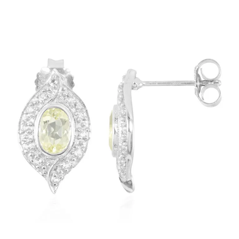 Erleben Sie die Anziehungskraft des brasilianischen gelben Skapolithen mit diesen Ohrringen aus Sterlingsilber, die ein Edelsteingesamtgewicht von 0,98 ct aufweisen. Verziert mit funkelnden Skapolithen im Ovalschliff, die von 24 runden weißen Topasen im Brillantschliff kontrastiert werden, sind diese Ohrringe ein Zeugnis raffinierter Eleganz. Jeder Scapolit-Edelstein wird zart von einem strahlenden Heiligenschein umrahmt und ist perfekt geeignet, um Tageskleidung aufzuwerten oder der Abendgarderobe einen Hauch von Raffinesse zu verleihen.