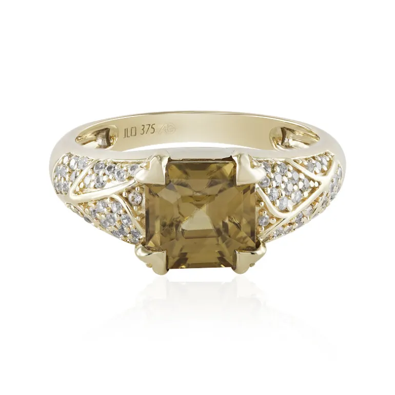 Entdecken Sie die Eleganz dieses atemberaubenden gelben Zirkonrings mit einem Edelstein im Asscher-Schliff aus Tansania. Umgeben von 62 runden Zirkonen aus Kambodscha, strahlt er Raffinesse in jedem Detail aus. Dieses exquisite Stück aus 9 Karat Gelbgold wiegt 3,81 g. Es eignet sich perfekt für besondere Anlässe oder als luxuriöses Accessoire für den Alltag. Kombinieren Sie es mit einem schicken Abendkleid für einen glamourösen Look.