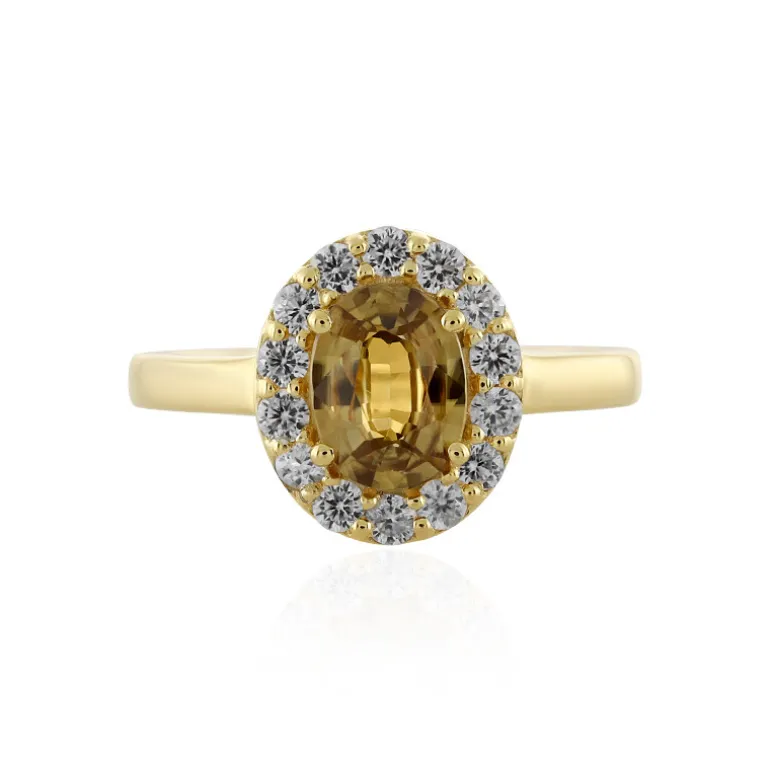 Sunset Glow Ovaler Zirkon aus Tansania Vergoldeter Ring, 2,43 ct