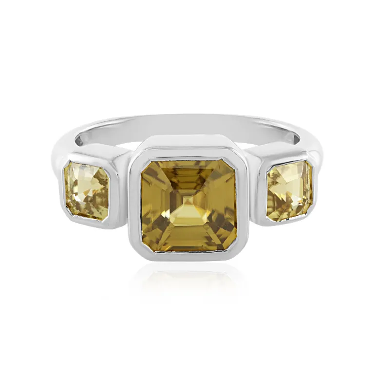Entdecken Sie die Anziehungskraft dieses raffinierten tansanischen gelben Zirkon-Silberrings, der ein Trio von Edelsteinen im Achteck-Schliff präsentiert, die Wärme und Eleganz ausstrahlen. Der zentrale gelbe Zirkon von 3,42 Karat wird von zwei weiteren Steinen flankiert, die zusammen ein Gesamtkaratgewicht von 5,32 Karat aufweisen. Der aus 925er Sterlingsilber gefertigte Ring ist mit einer Größe von 25×22 mm ein echter Hingucker. Er eignet sich perfekt für einen eleganten Tag oder einen glamourösen Abend und verleiht jedem Ensemble einen Hauch von Sonnenschein, was ihn zu einer exquisiten Ergänzung Ihrer Schmucksammlung macht.
