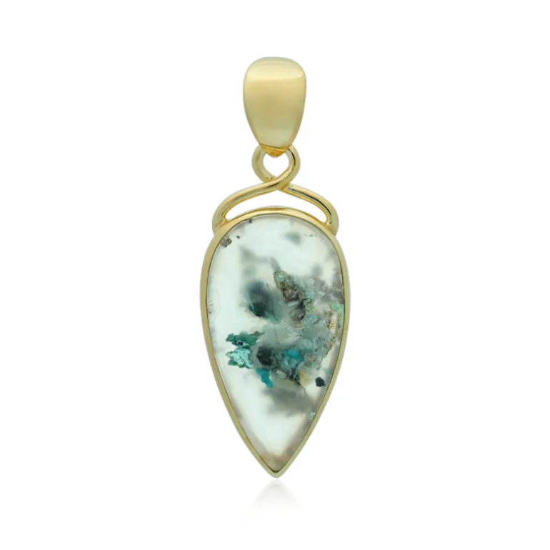 Indonesischer Edelstein Silica Teardrop Anhänger, 925 Silber vergoldet, 10,48 ct