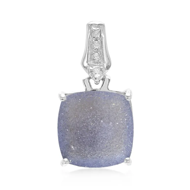 Dieser bezaubernde Anhänger zeigt einen atemberaubenden brasilianischen Glitzerachat mit einem Gewicht von 9,76 Karat im klassischen antiken Kissen-Cabochon-Schliff, gefasst in hochwertigem 925er Sterlingsilber. Die Brillanz der runden Steine im Brillantschliff ergänzt das Funkeln des Achats und wird durch glitzernde weiße Topase von insgesamt 0,134 Karat akzentuiert. Die Gesamtlänge von 29 mm macht ihn zu einem echten Blickfang. Dieser Anhänger ist perfekt geeignet, um sowohl der Tages- als auch der Abendgarderobe einen Hauch von Eleganz zu verleihen und ist ein Schatz für jede Schmucksammlung.