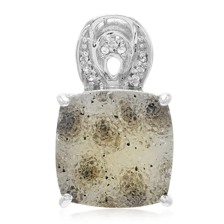 Dieser Anhänger zeigt einen faszinierenden brasilianischen Glitzer-Agat von 11,14 Karat, der mit neun strahlend weißen Topasen besetzt ist. Gefertigt aus feinstem 925er Sterlingsilber, fängt der antike Kissen-Cabochon-Schliff das Licht ein, um die glitzernde Essenz des Steins zu enthüllen. Mit einem Gesamtgewicht von 11,19 ct, gefasst in einem 23×14 mm großen Anhänger, ist dieses Schmuckstück eine elegante Ergänzung zu jedem Outfit, perfekt für intime Zusammenkünfte oder die tägliche Eleganz.