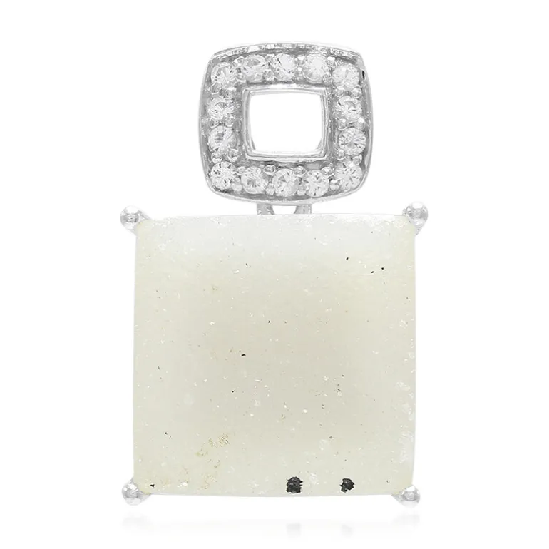 Dieser atemberaubende Anhänger zeigt einen brasilianischen Glitzerachat von 14,96 Karat, der in einen antiken Kissen-Cabochon geschliffen ist und mit seinem sanften Funkeln glänzt. Umrahmt wird er von 14 strahlenden weißen Topasen von insgesamt 0,212 Karat, die ihm einen luxuriösen Touch verleihen. Gefertigt aus hochwertigem 925er Sterlingsilber, strahlt dieses Schmuckstück mit einem Gesamtgewicht von 15,172 Karat Eleganz aus. Ideal, um die Abendgarderobe aufzuwerten oder um Ihrem Tagesoutfit einen raffinierten Glanz zu verleihen.