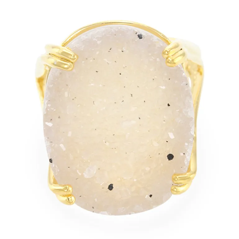 Entdecken Sie die Anziehungskraft unseres brasilianischen Glitzerachatrings mit einem großen ovalen Cabochon von 26,12 Karat, der durch seine schimmernden Einschlüsse besticht. Der Ring ist aus feinem 925er Sterlingsilber mit einer luxuriösen Goldplatte gefertigt und zeugt von moderner Eleganz und zeitloser Handwerkskunst. Der ca. 23×17 mm große Edelstein wird von einem 29×21 mm großen, vergoldeten Ring mit einem Gewicht von ca. 5,9 g umschlossen und ist somit ein ausgewogenes Schmuckstück. Dieser Ring eignet sich perfekt, um Ihrer Abendgarderobe einen Hauch von raffiniertem Glanz zu verleihen oder Ihren täglichen Stil aufzuwerten und wird mit Sicherheit ein geschätzter Teil Ihrer Schmucksammlung werden.