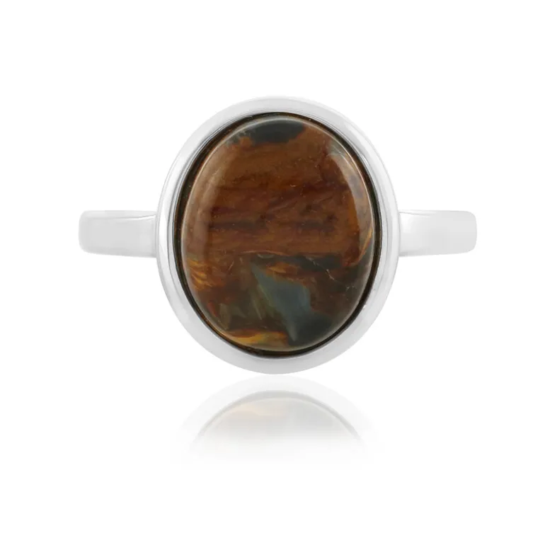 Entdecken Sie die fesselnde Anziehungskraft dieses atemberaubenden Rings mit einem ovalen Pietersit im Cabochon-Schliff von 3,78 Karat aus Namibia, gefasst in poliertem 925er Sterlingsilber. Der schillernde Edelstein mit seinen goldenen und blauen Schattierungen wird durch das schlichte Silberband perfekt ergänzt und macht ihn zu einem Highlight für jeden Anlass. Kombinieren Sie diesen zeitlosen Ring sowohl mit Freizeitkleidung als auch mit Abendgarderobe für einen Hauch von Eleganz.