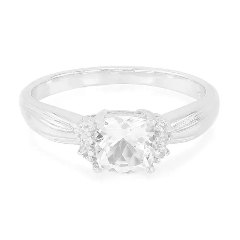 Entdecken Sie die Eleganz dieses Goshenit-Rings mit einem antiken Edelstein im Kissenschliff von 0,64 Karat aus Brasilien. Akzentuiert durch sechs runde weiße Topase im Brillantschliff, strahlt dieses 0,7-karätige Stück aus Sterlingsilber Raffinesse aus. Er ist ein vielseitiges Accessoire, das sowohl zu klassischen als auch zu modernen Stilen passt und sich perfekt für formelle Anlässe eignet oder dem Alltag einen Hauch von Glamour verleiht.
