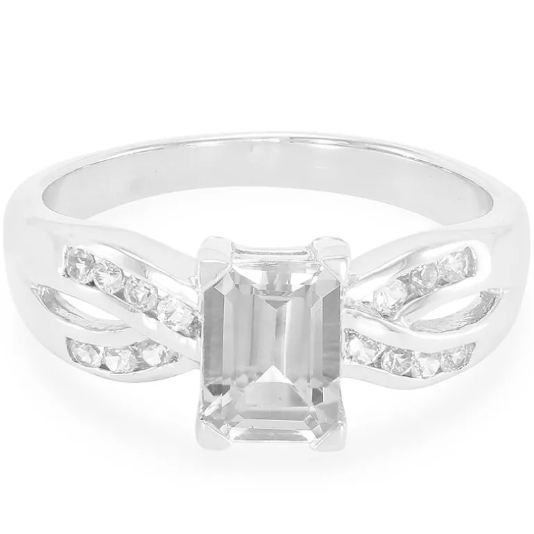 Dieser exquisite Ring aus brasilianischem Goshenit ist ein Meisterwerk der Handwerkskunst. In der Mitte befindet sich ein Stein im Oktagon-Schliff von 0,73 Karat, flankiert von 14 funkelnden weißen Topasen von insgesamt 0,197 Karat, gefasst in 925er Sterlingsilber. Das Gesamtgewicht des Rings beträgt 0,927 Karat, und sein bezaubernder Silberglanz passt zu jedem Outfit. Er ist ideal, um den Alltag zu verschönern oder die Eleganz des Abends zu unterstreichen und ist eine vielseitige Ergänzung Ihrer Sammlung.
