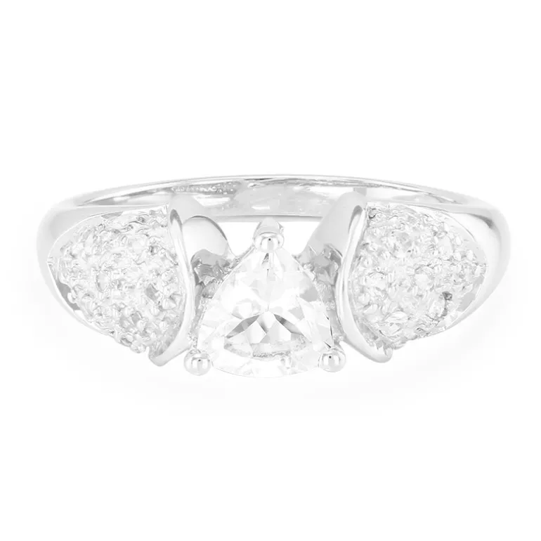 Entdecken Sie die zeitlose Eleganz unseres Rings aus brasilianischem Goshenit und weißem Topas, der mit einem 0,48 Karat schweren Trillantschliff in der Mitte und weiteren 0,201 Karat funkelnden runden Topasen im Brillantschliff makellos gefertigt ist. Das elegante 925er Sterling Silber bietet einen glänzenden Hintergrund für diese Edelsteine mit einem Gesamtgewicht von 0,681 ct. Dieser 25×21 mm große Ring ist ein ideales Schmuckstück für besondere Anlässe oder für das tägliche Tragen. Seine makellose Ausstrahlung und sein raffiniertes Design machen ihn zu einem Muss für jede anspruchsvolle Schmucksammlung.
