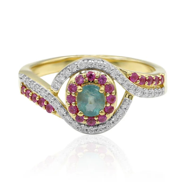 Der AMAYANI Madagaskar Grandidierite 18K Gold Ring ist eine atemberaubende Verschmelzung von Luxus und Rarität. Der zentrale Grandidierit im Ovalschliff mit einem Gewicht von 0,27 Karat ist von einem Halo aus lebhaften rosa australischen Saphiren mit einem Gesamtgewicht von 0,264 Karat umgeben und wird von 0,153 Karat funkelnden Diamanten der Klasse H I1 akzentuiert. Die Fassung aus 18 Karat Gelbgold mit einem Gewicht von ca. 4,97 g ergänzt die Pastelltöne auf elegante Weise und macht ihn zu einem idealen Accessoire für formelle Anlässe oder einen raffinierten Alltagslook. Gönnen Sie sich diese exquisite Kreation und fügen Sie Ihrer Sammlung einen Hauch von einzigartiger Raffinesse hinzu.