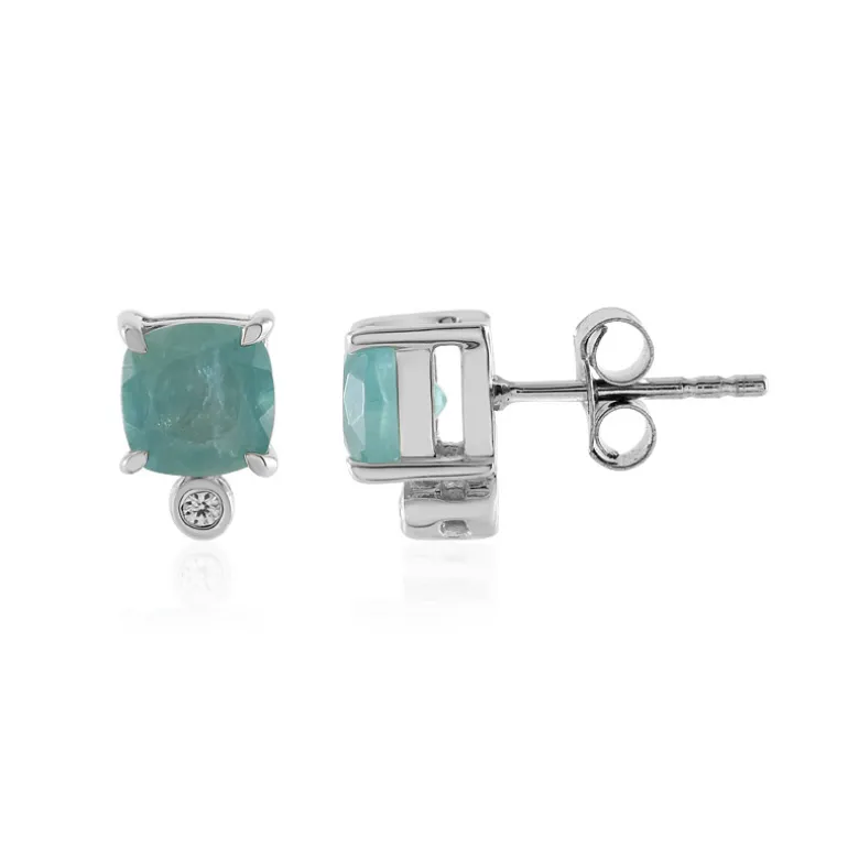 Diese Ohrringe aus Grandidierit im Kissenschliff mit 1,86 Karat heben die ruhigen Aquatöne des Madagaskars hervor. Eingebettet in platiniertes 925er Sterling Silber und begleitet von kambodschanischen Zirkon-Akzenten, verbindet dieses Paar Eleganz mit einem Hauch von Funkeln. Diese Ohrringe eignen sich perfekt, um sowohl im Alltag als auch am Abend einen Hauch von Farbe in die Garderobe zu bringen. Sie sind ein Muss für alle, die subtile Raffinesse und den Charme seltener Edelsteine zu schätzen wissen.