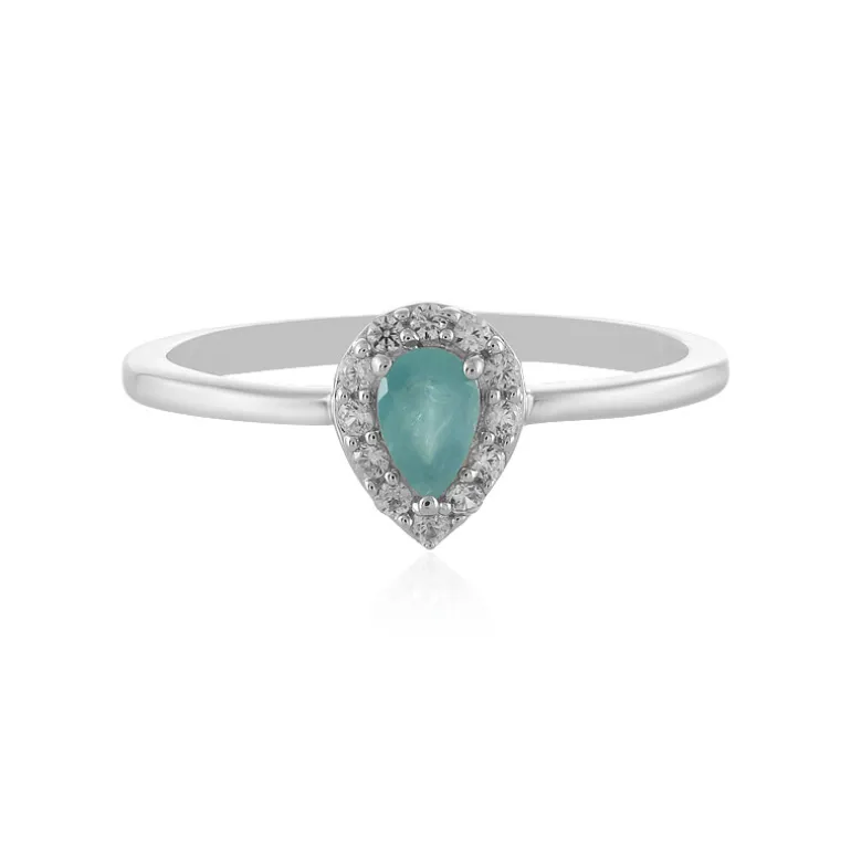 Genießen Sie die seltene Schönheit dieses ruhigen Grandidierits aus Madagaskar, der in einen funkelnden Halo aus kambodschanischem Zirkon eingefasst ist, der fachmännisch zu einer tropfenförmigen Silhouette verarbeitet wurde. Dieser 0,37ct Grandidierit, eingebettet in platiniertes 925er Sterlingsilber, strahlt einen ruhigen, aquamarinfarbenen Farbton aus, der durch ein Gesamtgewicht von 0,609ct ergänzt wird. Dieser Ring ist perfekt geeignet, um der Alltagskleidung einen Hauch von Raffinesse zu verleihen oder die Abendgarderobe aufzuwerten. Er ist eine wertvolle Ergänzung für jede Sammlung.