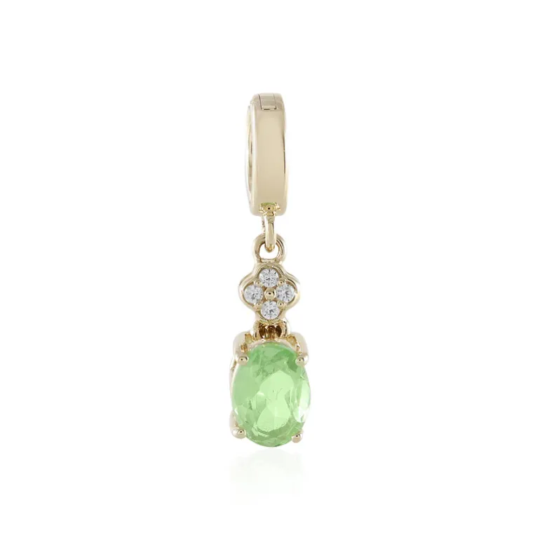 Entdecken Sie die Anziehungskraft dieses bezaubernden Anhängers, der einen glänzenden 0,76-karätigen tansanischen Grossular-Edelstein präsentiert, der elegant in 9-karätiges Gold mit funkelnden Zirkon-Highlights eingefasst ist. Mit einer Größe von 22×5 mm und einem einzigartigen Vario-Clip für Vielseitigkeit ist er ein ideales Accessoire für den Übergang vom Tag zum Abend. Dieses raffinierte Schmuckstück passt zu allen Jahreszeiten und ergänzt mühelos sowohl formelle als auch legere Kleidung.
