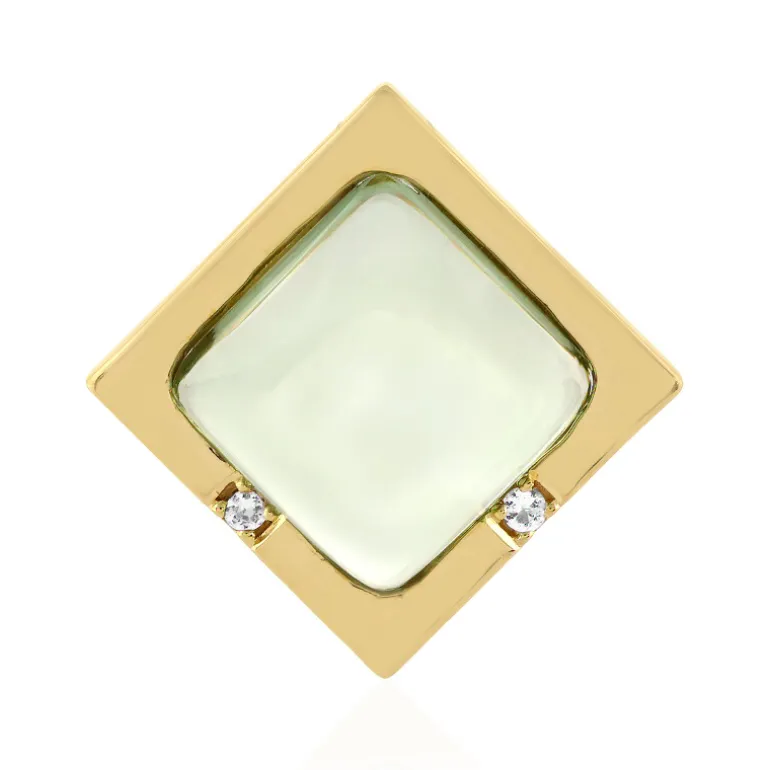 Entdecken Sie die Faszination der Monosono Collection mit diesem exquisiten grünen Amethyst-Anhänger. Der Amethyst mit einem Carré-Cabochon von 9,044 Karat aus Brasilien und zwei funkelnden weißen Topasen aus Madagaskar ist in 925er Sterlingsilber mit eleganter Goldplattierung gefasst. Er eignet sich sowohl für legere als auch für formelle Anlässe und verleiht jedem Outfit einen Hauch von Raffinesse, was ihn zu einer vielseitigen Ergänzung Ihrer Schmucksammlung macht.