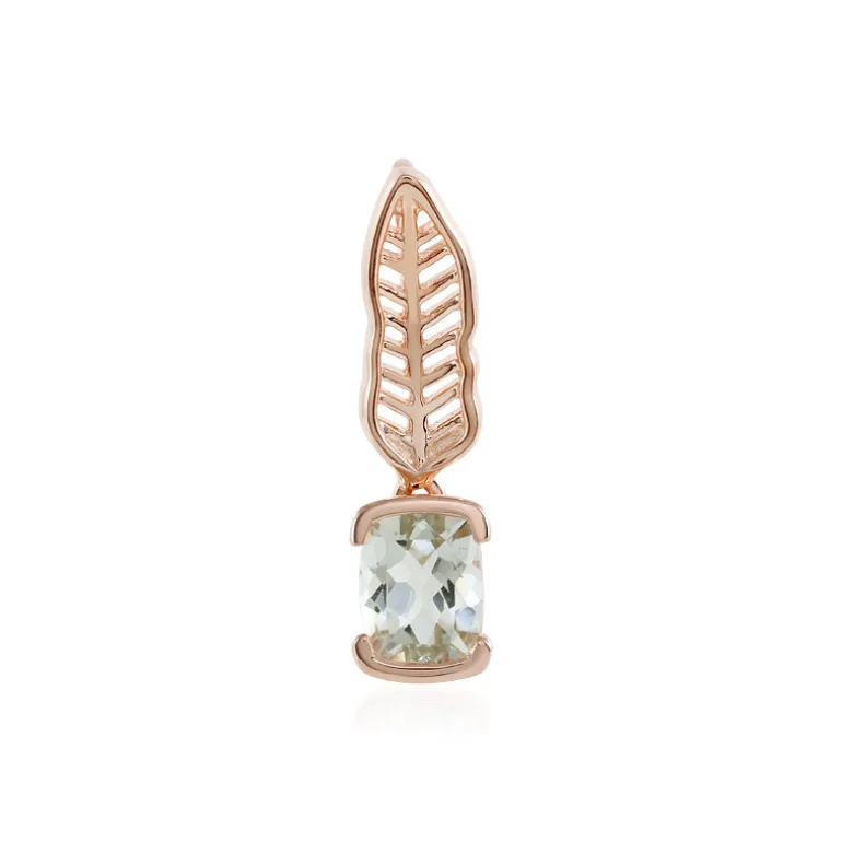 Dieser bezaubernde Anhänger aus rosévergoldetem 925er Sterlingsilber präsentiert einen grünen brasilianischen Amethysten von 1,825 Karat, der im antiken Stil geschliffen ist und in einer modernen Fassung glänzt. Das Blattmuster auf dem Ballen verleiht dem Anhänger einen Hauch von naturinspirierter Eleganz und eignet sich perfekt, um sowohl der Freizeit- als auch der Abendgarderobe einen Hauch von Farbe und Raffinesse zu verleihen. Das blattförmige Design ist ideal für Naturliebhaber und alle, die einen Hauch von organischem Charme in ihren Accessoires schätzen.