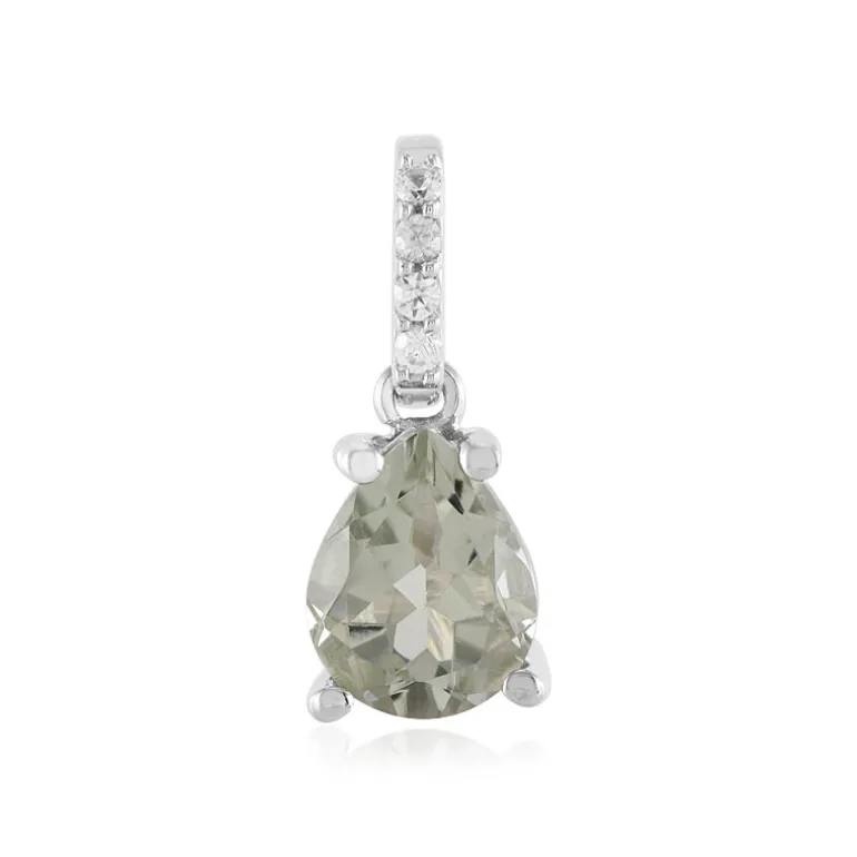Dieser atemberaubende Anhänger besticht durch einen 1,199 Karat großen brasilianischen grünen Amethysten, der von einem Quartett funkelnder kambodschanischer Zirkone gekrönt wird. Der Anhänger ist aus platiniertem 925er Sterlingsilber gefertigt und verbindet klassische Eleganz mit modernem Charme. Es ist ein vielseitiges Accessoire, das sowohl tagsüber als auch abends einen Hauch von Eleganz versprüht und zu verzaubern weiß.