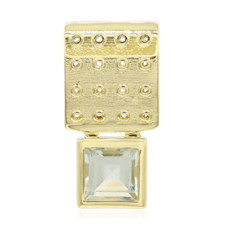 Entdecken Sie die Faszination dieses exquisiten Anhängers aus der MONOSONO COLLECTION mit einem grünen brasilianischen Amethysten im Quadratschliff mit einem Gewicht von 1,07ct. Elegant gefasst in 925er Sterling Silber mit einer luxuriösen Goldplattierung, strahlt dieser Anhänger Raffinesse aus. Das minimalistische Design von 21×10 mm hebt den bezaubernden Farbton des Edelsteins hervor und macht ihn zu einem vielseitigen Accessoire, das sich sowohl für zwanglose Ausflüge als auch für formelle Anlässe eignet.