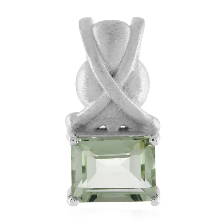 Dieser Anhänger aus 925er Sterlingsilber präsentiert einen wunderschönen brasilianischen grünen Amethysten im Baguetteschliff von 2,23 Karat und einer Größe von ca. 9×7 mm, der in eine elegante, verschlungene Silberfassung eingefasst ist. Das subtile, ineinander verschlungene Detail vermittelt ein Gefühl von Raffinesse und ist perfekt, um jedem Outfit einen Hauch von Raffinesse zu verleihen. Dieses Schmuckstück ist ein Muss für alle, die ein ausgewogenes Gleichgewicht zwischen klassischem Design und modernem Flair zu schätzen wissen, und eignet sich ideal als Geschenk oder persönliches Schmuckstück.