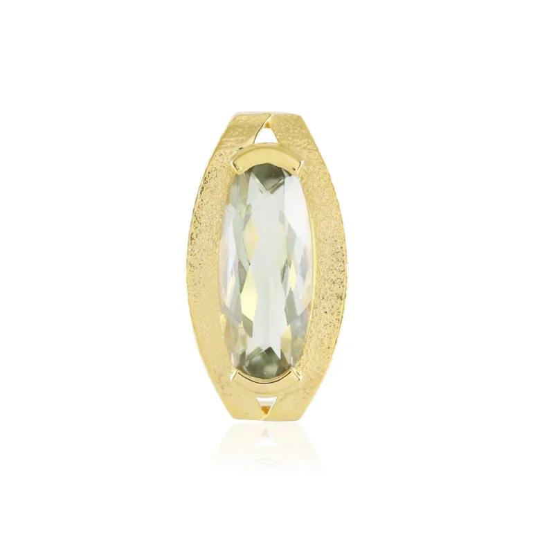 Entdecken Sie die Anziehungskraft dieses bezaubernden brasilianischen grünen Amethyst-Anhängers im Ovalschliff, der elegant an einer vergoldeten Fassung aus 925er Sterlingsilber hängt. Der 4,05-karätige Edelstein ruht in einer strukturierten Fassung von 21 x 11 mm, die das Licht einfängt und ein sanftes, grünes Leuchten ausstrahlt. Das vielseitige Schmuckstück passt sowohl zu Tages- als auch zu Abendgarderobe und bereichert Ihre Ästhetik mit einem Hauch von naturinspirierter Raffinesse. Dieser Anhänger aus der MONOSONO COLLECTION verkörpert zeitgenössische Eleganz und eignet sich hervorragend als Geschenk oder persönliches Schmuckstück.