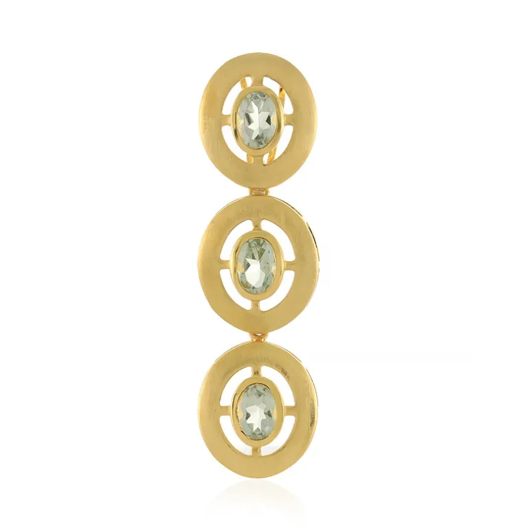 Entdecken Sie die Faszination unseres brasilianischen grünen Amethyst-Anhängers, der zur exklusiven MONOSONO COLLECTION gehört. Dieses auffällige Schmuckstück besteht aus drei grünen Amethysten im Ovalschliff mit einem Gesamtgewicht von 2,295 Karat, die in einem elegant gestalteten 925er Sterlingsilber mit einer üppigen Goldplattierung gefasst sind. Mit seinen Maßen von 50 x 14 mm ist er ein Statement-Stück, das jedes Outfit aufwertet. Sein sanfter Grünton verspricht Vielseitigkeit und macht ihn zu einem idealen Accessoire für Tag und Nacht.