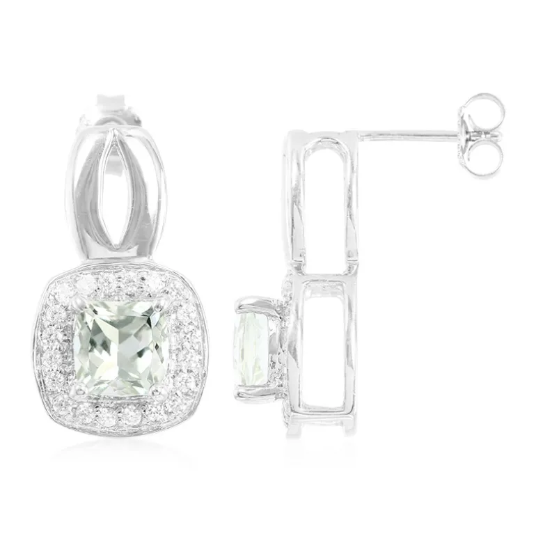 Entdecken Sie diese bezaubernden Ohrringe mit 2,7 Karat grünen Amethysten aus Brasilien, die elegant in einer antiken Kissenform geschliffen sind. Umgeben von 40 schillernden Zirkonsteinen aus Kambodscha schimmern diese Ohrringe bei jeder Bewegung. Sie sind aus 925er Sterlingsilber gefertigt und bieten eine raffinierte Eleganz, die sich perfekt für Abendveranstaltungen eignet oder dem Alltagsoutfit einen Hauch von Glamour verleiht.