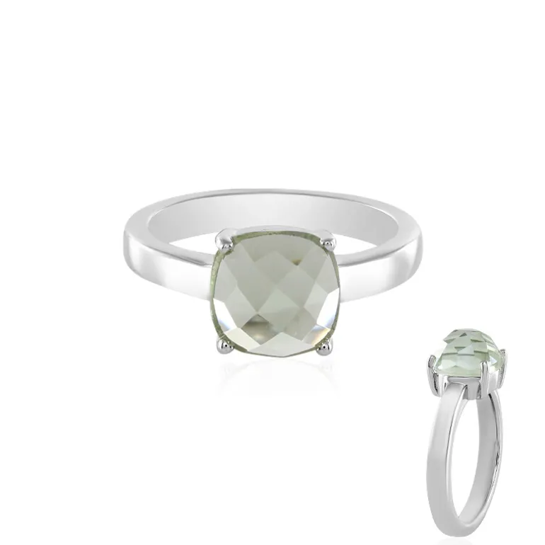 Brasilianischer grüner Amethyst Cushion Silber Ring, 2,07ct