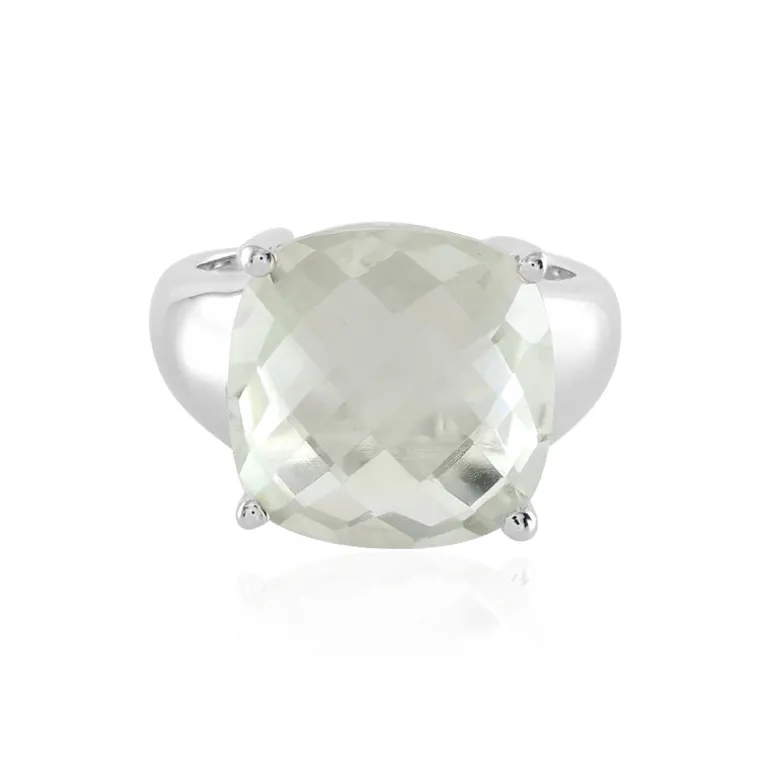 Schmücken Sie Ihre Hand mit der subtilen Eleganz unseres Cushion-Cut Green Amethyst Sterling Silver Ring. Dieser 7,76 Karat schwere brasilianische Edelstein ist meisterhaft in eine antike Kissenbriolettform geschliffen, die das Licht einfängt und seinen pastellgrünen Farbton hervorhebt. Der 14 mm große Stein ist in ca. 5,02 Gramm feinem 925er Sterlingsilber gefasst und bildet ein auffälliges Herzstück. Perfekt, um Ihrer täglichen Garderobe einen Hauch von Raffinesse zu verleihen oder um bei besonderen Anlässen für Gesprächsstoff zu sorgen.