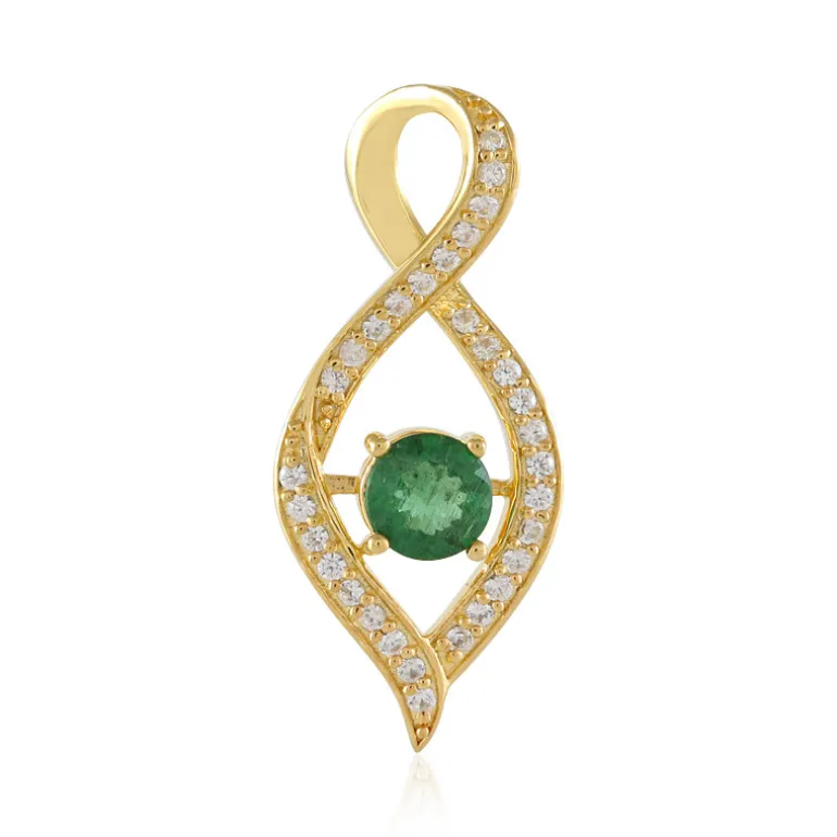 Dieser elegante Anhänger zeigt einen faszinierenden grünen Apatit aus Madagaskar, der zu einem runden 0,662-karätigen Edelstein geschliffen ist. Umgeben von 31 schillernden Zirkonsteinen aus Tansania bietet dieses Stück einen brillanten Kontrast. Der aus 925er Sterlingsilber gefertigte und vergoldete Anhänger ist eine wunderbare Ergänzung zur Abendgarderobe und passt sowohl zu legeren als auch zu formellen Outfits.