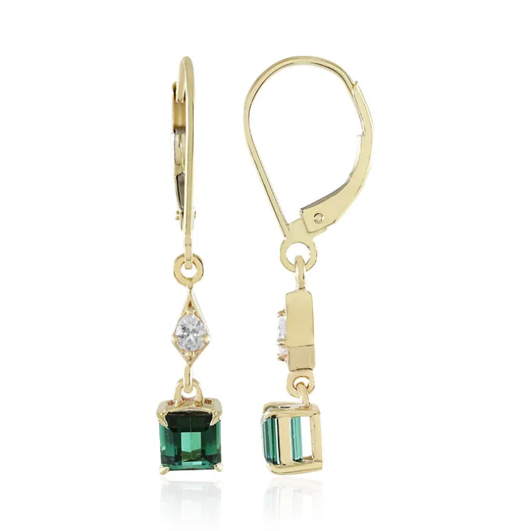 Entdecken Sie den fesselnden Charme dieser Ohrringe aus 9 Karat Gelbgold, die glänzende 1,165 Karat grüne Turmaline aus Brasilien in einem eleganten Achteck mit Stufenschliff zur Geltung bringen. Anmutig aufgehängt sind funkelnde kambodschanische Zirkon-Akzente im tropfenförmigen Brillantschliff. Mit einem Gewicht von ca. 1,47 g und einer Größe von 33 mm sind diese raffinierten Ohrringe bei jeder Bewegung ein Blickfang. Diese Ohrringe eignen sich perfekt, um einem abendlichen Ensemble einen Hauch von Raffinesse zu verleihen oder das Tagesoutfit aufzuwerten. Sie sind eine vielseitige Ergänzung für jede Schmucksammlung.