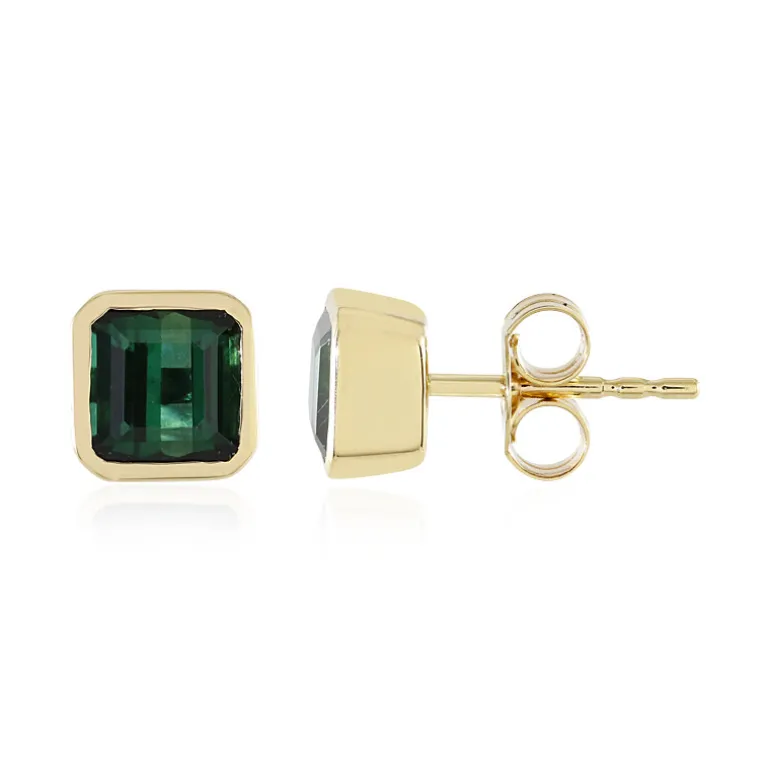 Entdecken Sie die Faszination dieser eleganten Ohrstecker aus 375er Gelbgold mit dem satten Grün des brasilianischen Benedikto-Turmalins. Jeder der achteckigen, stufenförmig geschliffenen Edelsteine ist ca. 5,5 mm groß und setzt ein subtiles, aber wirkungsvolles Statement. Mit einem kombinierten Edelsteingewicht von 1,704 Karat und einem Goldgewicht von etwa 1,3 Gramm sind diese Ohrringe ein Zeugnis für unaufdringlichen Luxus. Sie sind ebenso vielseitig wie zeitlos und eignen sich perfekt, um der Bürokleidung einen Hauch von Raffinesse zu verleihen oder einen Abend zum Ausgehen zu verschönern.