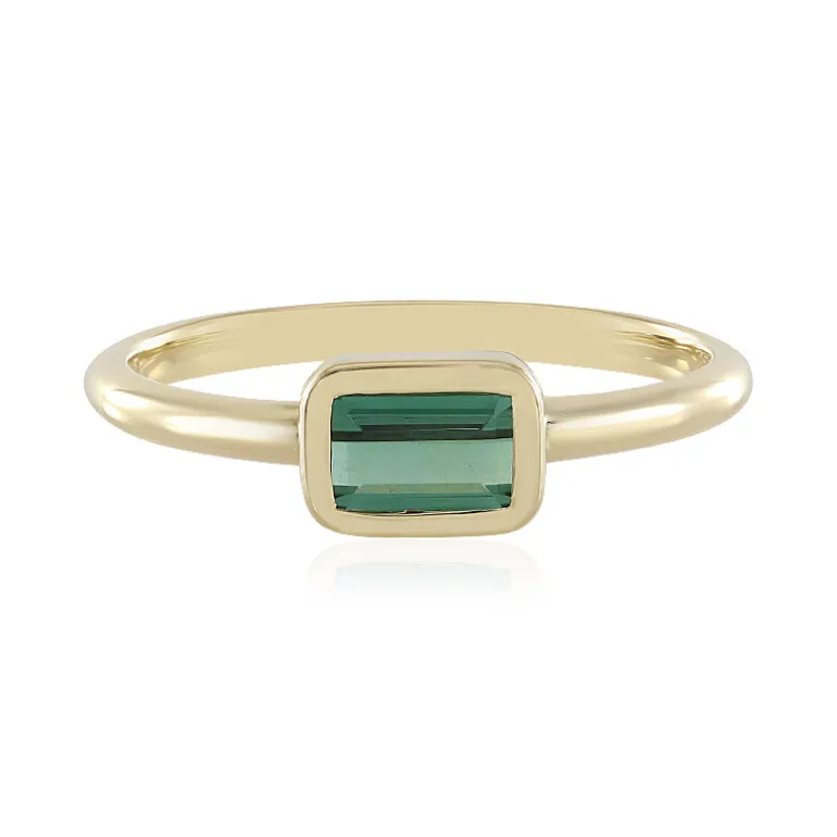 Entdecken Sie die subtile Eleganz dieses Rings mit einem brasilianischen grünen Benedito-Turmalin. Das aus feinem 9-karätigem Gelbgold gefertigte Schmuckstück verfügt über einen 0,48-Karat-Edelstein mit einem achteckigen Stufenschliff für maximale Brillanz. Das schlanke Profil des 1,65 g schweren Goldrings unterstreicht die leuchtenden Farben des Turmalins und macht ihn zu einem vielseitigen Accessoire für die Geschäftswelt oder zu einer eleganten Ergänzung eines Abendoutfits. Lassen Sie sich vom Charme der brasilianischen Edelsteine mit diesem zeitlosen Design verzaubern.