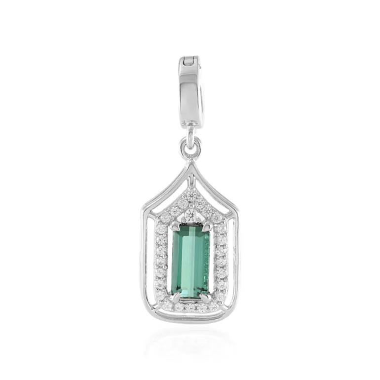Entdecken Sie die Anziehungskraft dieses schicken grünen Benedicto-Turmalin-Silberanhängers, der Eleganz und kräftige Farben miteinander verbindet. Der grüne Turmalin im Smaragdschliff, der von einem Halo aus funkelnden Zirkonen umgeben ist, verleiht jedem Ensemble einen Hauch von Raffinesse. Das vom Vintage-Stil inspirierte Design ist vielseitig genug, um tagsüber getragen zu werden, und dennoch auffallend für Abendveranstaltungen, was ihn zu einer unverzichtbaren Ergänzung jeder Schmucksammlung macht. Kombinieren Sie diesen Anhänger mit einer klassischen weißen Bluse oder einem kleinen schwarzen Kleid für einen unvergesslichen Look.