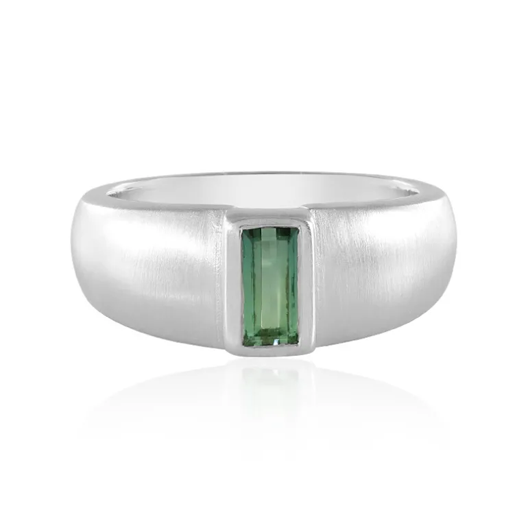 Entdecken Sie die schlichte Eleganz dieses brasilianischen grünen Benedito-Turmalinrings. Der 0,407 Karat schwere Edelstein im Baguetteschliff strahlt eine moderne geometrische Ausstrahlung aus, die durch den Glanz von 925er Sterlingsilber mit Platinplattierung ergänzt wird. Mit einem Gewicht von ca. 5,67 g stellt der Ring eine harmonische Mischung aus Luxus und Schlichtheit dar. Sein kühnes und doch subtiles Design lässt sich mühelos mit Geschäftskleidung oder einem raffinierten Abendlook kombinieren, vielseitig für den Übergang vom Tag zum Abend. Dieses Schmuckstück steht nicht nur für Geschmack, sondern auch für eine Verbindung zu den bezaubernden Edelsteinquellen Brasiliens.