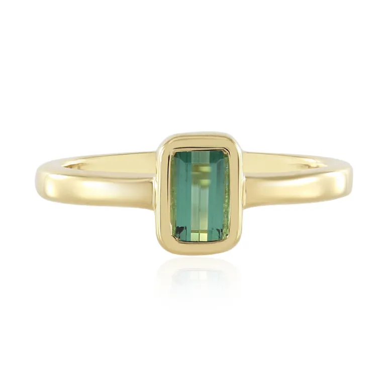 Dieser auffällige Ring ist mit einem brasilianischen grünen Benedito-Turmalin besetzt, der in ein glänzendes 925er Sterlingsilberband mit einer eleganten Goldplattierung eingefasst ist. Der achteckige, stufenförmig geschliffene Edelstein misst ca. 6 x 4 mm und hat ein Gesamtgewicht von 0,496 ct, was ihn zu einer ebenso zarten wie markanten Wahl macht. Die klaren Linien und die moderne Silhouette passen sowohl zu Tages- als auch zu Abendgarderobe und eignen sich für jeden Anlass, von zwanglosen Ausflügen bis hin zu formellen Anlässen.