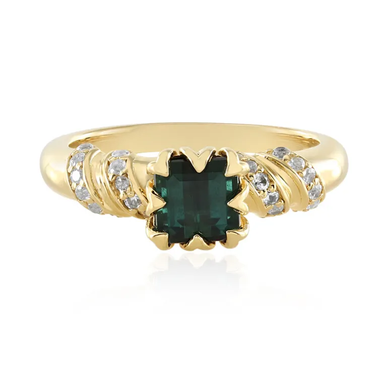 Dieser Ring zeigt einen auffälligen brasilianischen grünen Turmalin im Achteck-Schliff, gefasst in glänzend vergoldetem 925er Sterlingsilber, mit einem Gesamtgewicht von 1,138 Karat. Verziert mit 24 funkelnden kambodschanischen Zirkonen, verbindet dieses Schmuckstück moderne Raffinesse mit klassischer Eleganz. Ideal, um dem Alltag einen Hauch von Luxus zu verleihen oder ein abendliches Ensemble zu ergänzen.