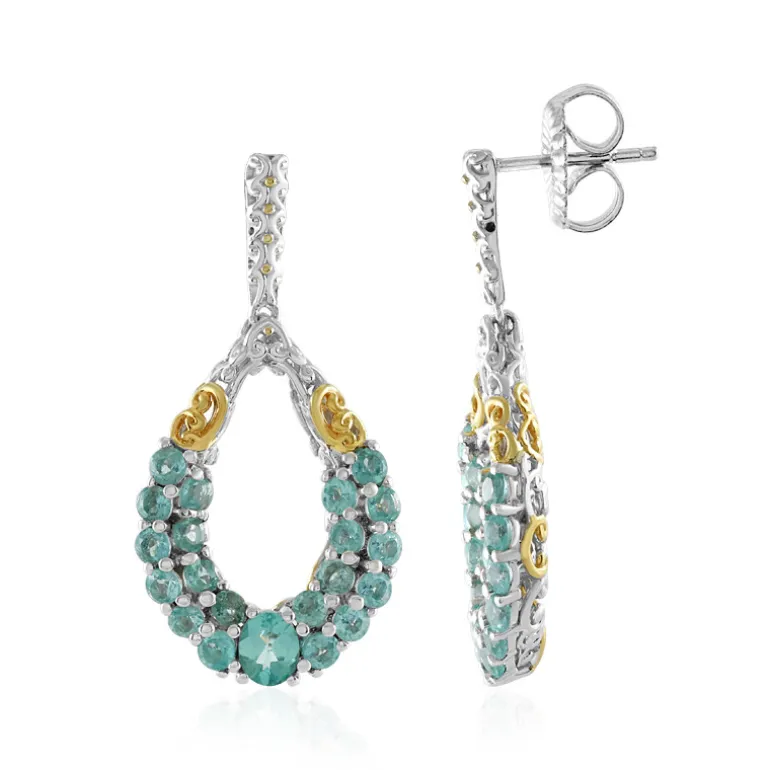 Wir präsentieren unsere atemberaubenden Tropfenohrringe, die die heiteren Farben des Madagaskar-Apatits zur Geltung bringen. Diese schicken Ohrringe bestehen aus einer harmonischen Mischung von 42 Apatiten mit einem Gesamtkaratgewicht von 3,515 ct, gefasst in hochwertigem 925er Sterling Silber. Mit einer Länge von 35 mm besitzen diese Ohrringe eine bezaubernde Präsenz und strahlen bei jedem Tragen Raffinesse aus. Sie sind ideal für Abende oder besondere Anlässe und passen perfekt zu einer eleganten Hochsteckfrisur und Ihrem Lieblingscocktailkleid.