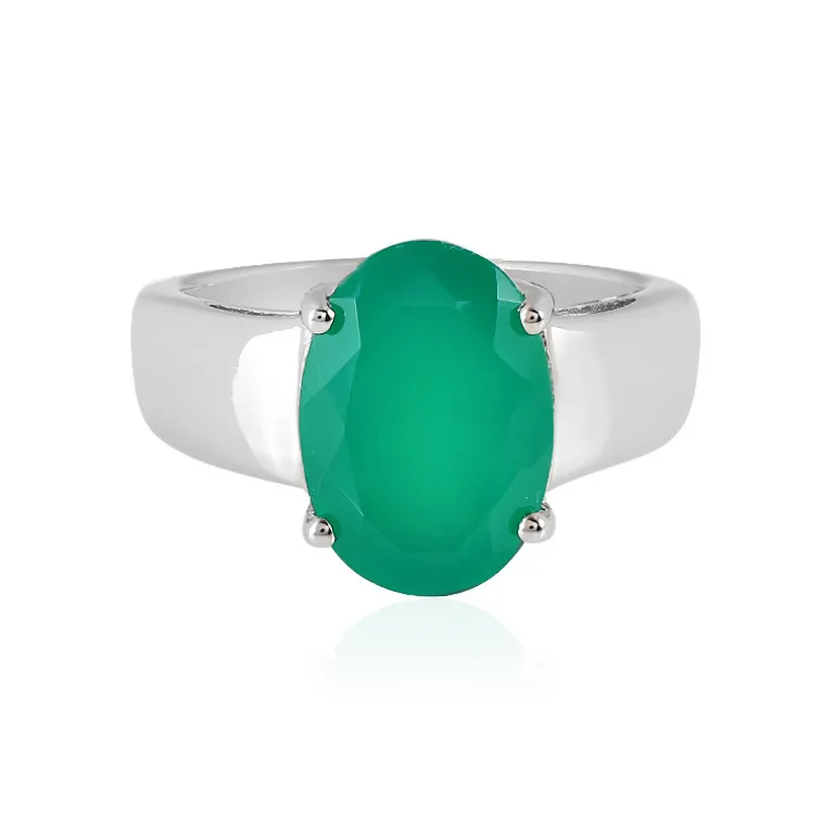 Indischer Grüner Onyx 4,43ct Platinplattierter Silberring