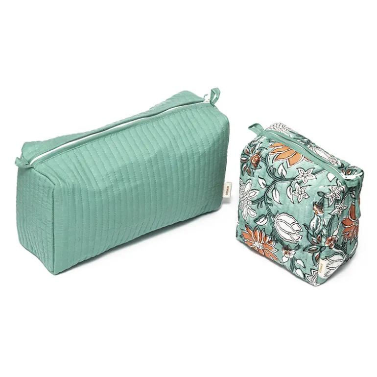 Aarya Handgefertigte Baumwolle Kosmetiktasche Set, Teal