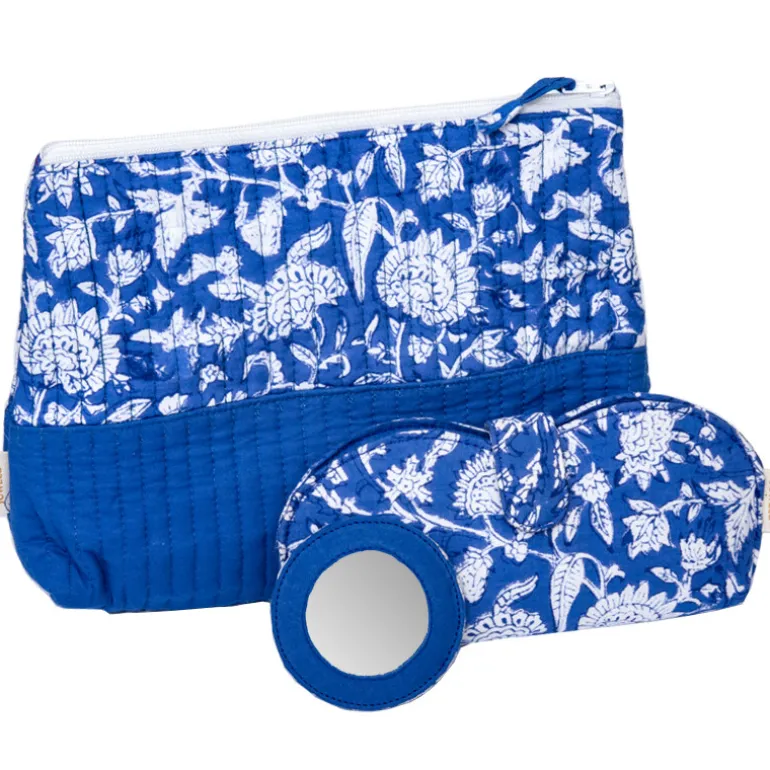 Begeben Sie sich mit dem Chic Raahi Travel Set auf stilvolle Reisen. Dieses handgenähte Ensemble umfasst zwei vielseitige Taschen und einen Kompaktspiegel, die fachmännisch für Langlebigkeit und Leichtigkeit hergestellt wurden. Das lebhafte blaue Blumenmuster verleiht dem Set einen Hauch von Eleganz und eignet sich perfekt für die Organisation der wichtigsten Utensilien für unterwegs. Dieses Set ist ideal für Kurztrips oder längere Reisen und verspricht, ein praktischer und zugleich modischer Reisebegleiter zu sein.