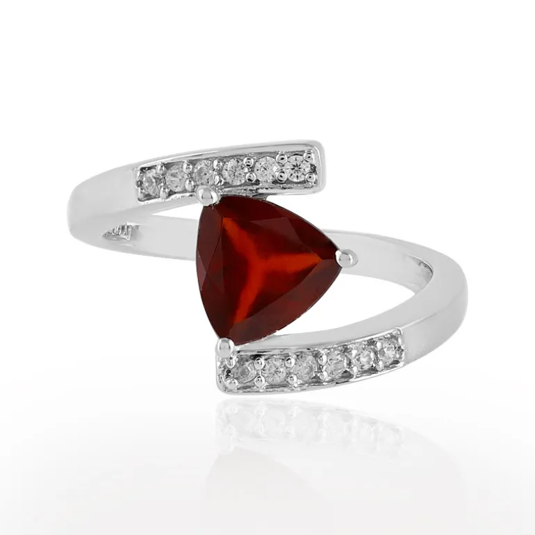 Betonen Sie Ihre Hand mit der strahlenden Schönheit dieses raffinierten indischen Hessonit-Granat-Silberrings. Ein 1,152 Karat schwerer Edelstein im Trillant-Schliff steht im Mittelpunkt, flankiert von funkelnden kambodschanischen Zirkon-Akzenten von insgesamt 0,143 Karat. Der aus platiniertem 925er Sterlingsilber gefertigte Ring schmückt den Finger mit einem modernen, offenen Design, das sich perfekt für modische Ensembles und besondere Anlässe eignet. Die warmen, tiefroten Farbtöne sorgen für einen auffälligen Look, der alle Blicke auf sich zieht.