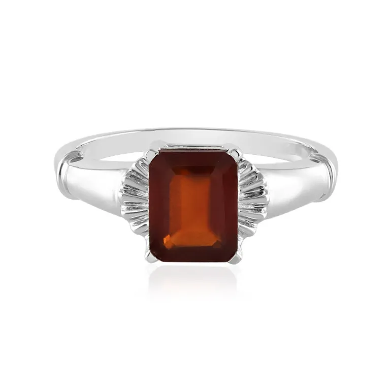 Entdecken Sie die warme Anziehungskraft des indischen Hessonit-Granats, elegant präsentiert in einem zeitlosen Ring aus Sterlingsilber. Der exquisite 2,434 Karat schwere Stein ist fachmännisch in einem achteckigen Stufenschliff geschliffen, der seine tiefen, satten Farbtöne und seine faszinierende Klarheit hervorhebt. Der Ring aus 925er Sterlingsilber mit Premium-Plattierung wiegt etwa 2,91 Gramm und besticht durch seine raffinierte Raffinesse. Dieser Ring eignet sich sowohl für lässige Eleganz als auch für formelle Anlässe und ist eine vielseitige Ergänzung für jede Schmucksammlung.