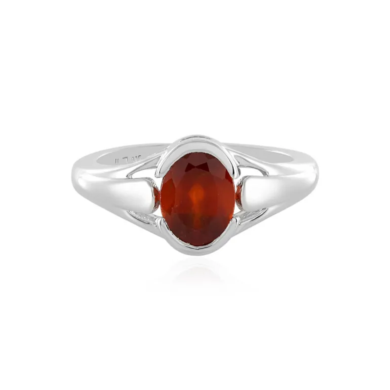 Indischer Hessonit-Granat Platinbeschichteter Silberring, 1,41ct