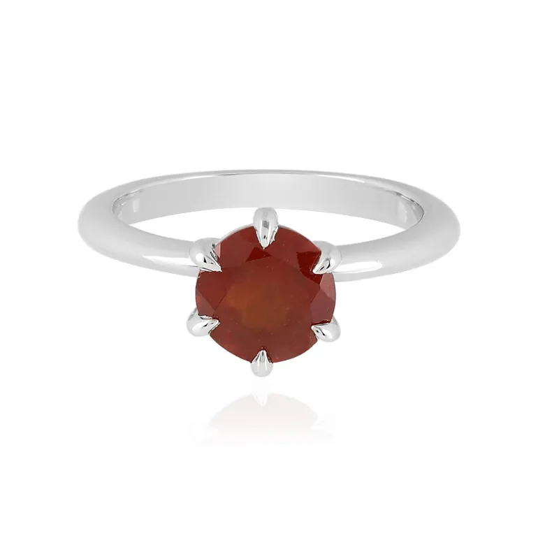 Entdecken Sie die bezaubernde Anziehungskraft unseres Hessonit-Granatrings, eines atemberaubenden Schmuckstücks mit einem strahlenden 1,27-Karat-Edelstein aus Indien, eingefasst in glänzendes platiniertes 925er Sterlingsilber. Der Granat im Rundschliff strahlt einen warmen, zimtfarbenen Farbton aus, der jedem Ensemble eine erdige Eleganz verleiht. Dieses vielseitige Schmuckstück eignet sich sowohl für einen legeren Brunch als auch für elegante Abende und wird zu einem geschätzten Bestandteil Ihrer Schmucksammlung.