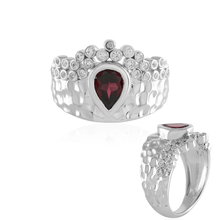 Erleben Sie Eleganz mit diesem atemberaubenden Rhodolith Silberring mit einem fesselnden 1,44 Karat indischen Rhodolith in Tropfenform, ergänzt durch funkelnde kambodschanische Zirkone. Dieses exquisite Stück aus 925er Sterling Silber hat eine gehämmerte Oberfläche, die ihm einen einzigartigen Touch verleiht. Perfekt für besondere Anlässe oder einen eleganten Abend. Kombinieren Sie es mit einem eleganten Kleid, um einen bleibenden Eindruck zu hinterlassen.
